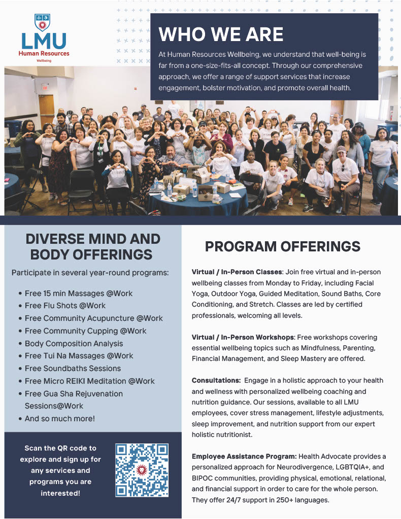 Explore the many FREE Wellbeing Offering services we provide to all Faculty and Staff. From shared learning experiences to individualized care, we provide wellbeing resources tailored for you.